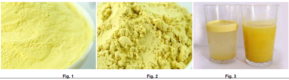 Raw pine pollen is light yellow in color, entwisted with sense of lubrication, easy to lift up in the air with a light weight. When raw pollen is shaken in a sealed transparent container, we could find pine pollen has fluid characteristic. However the appearance and some physical properties changed after breaking the cell way by high-speed airflow smashing. Airbag structures have been smashed and separated from pine pollen grain main structure and main structure of pine pollen grain is relatively enriched. After breaking the cell wall, superficial area of pine pollen increased and lost its fluid characteristic, with a strong adhesivity which is hard to lift up instead.